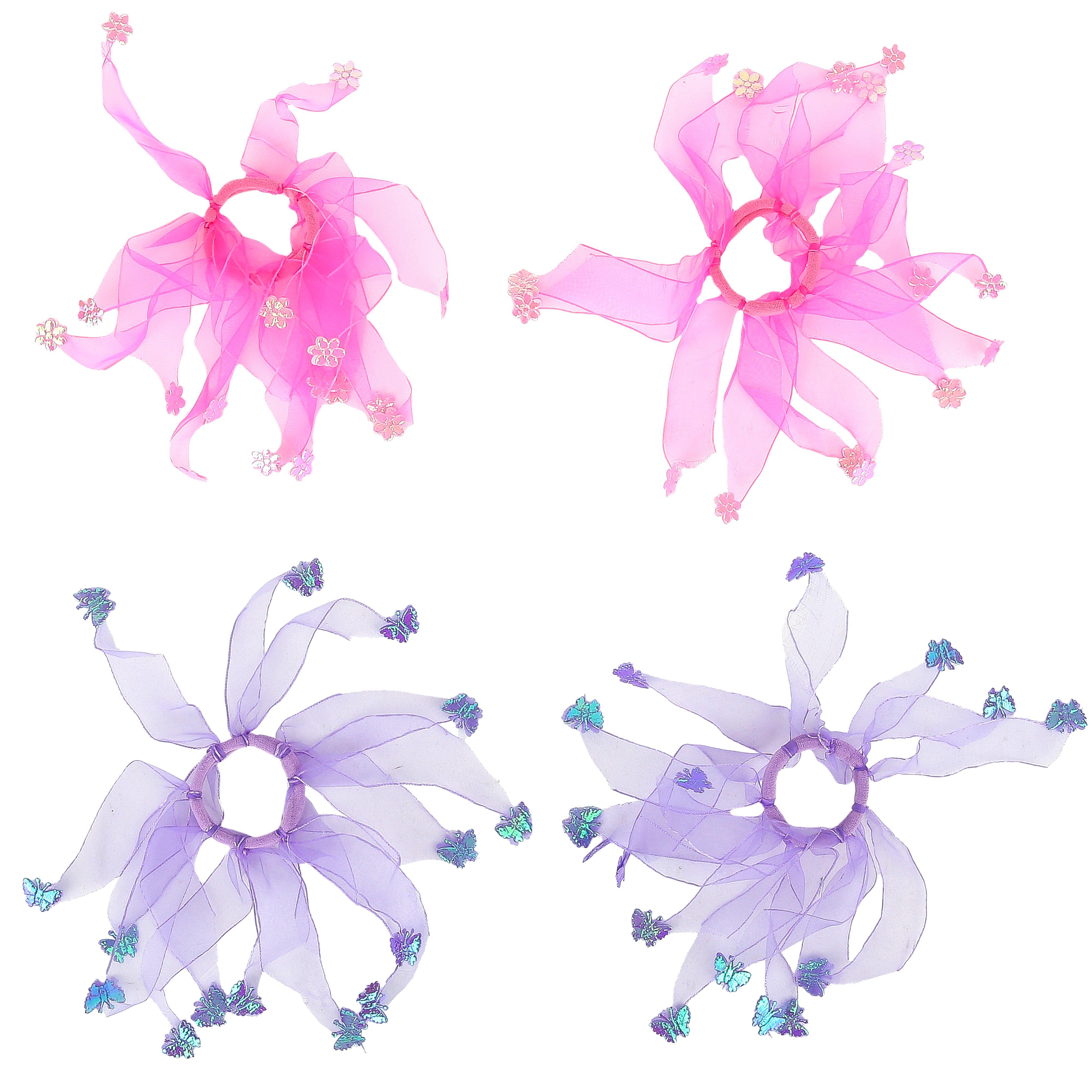 Butterfly & Flower Tutu Hair Ties, 4 count, Ages 5 & Up