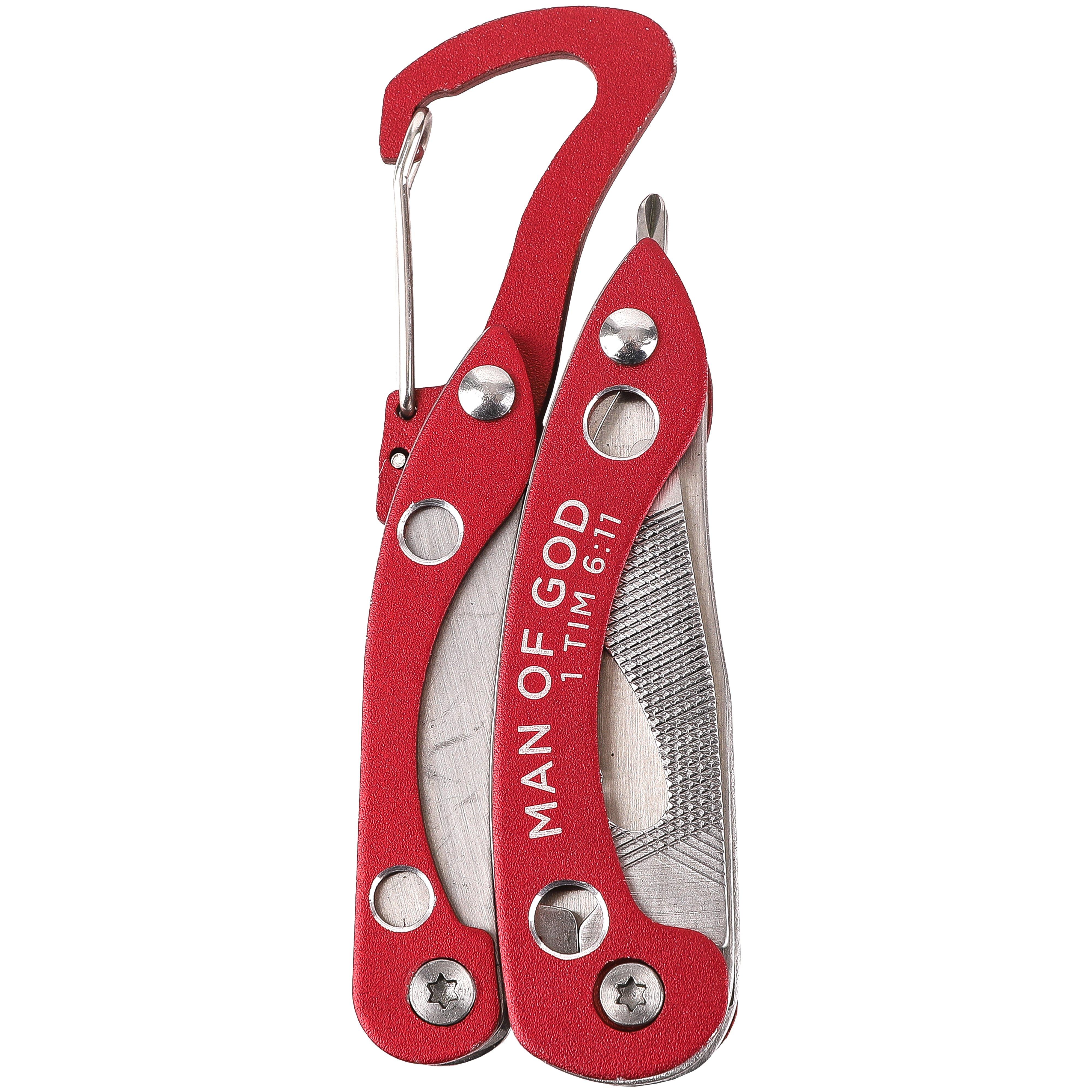 1 Timothy 6:11 Man of God Red Carabiner Multi-Tool