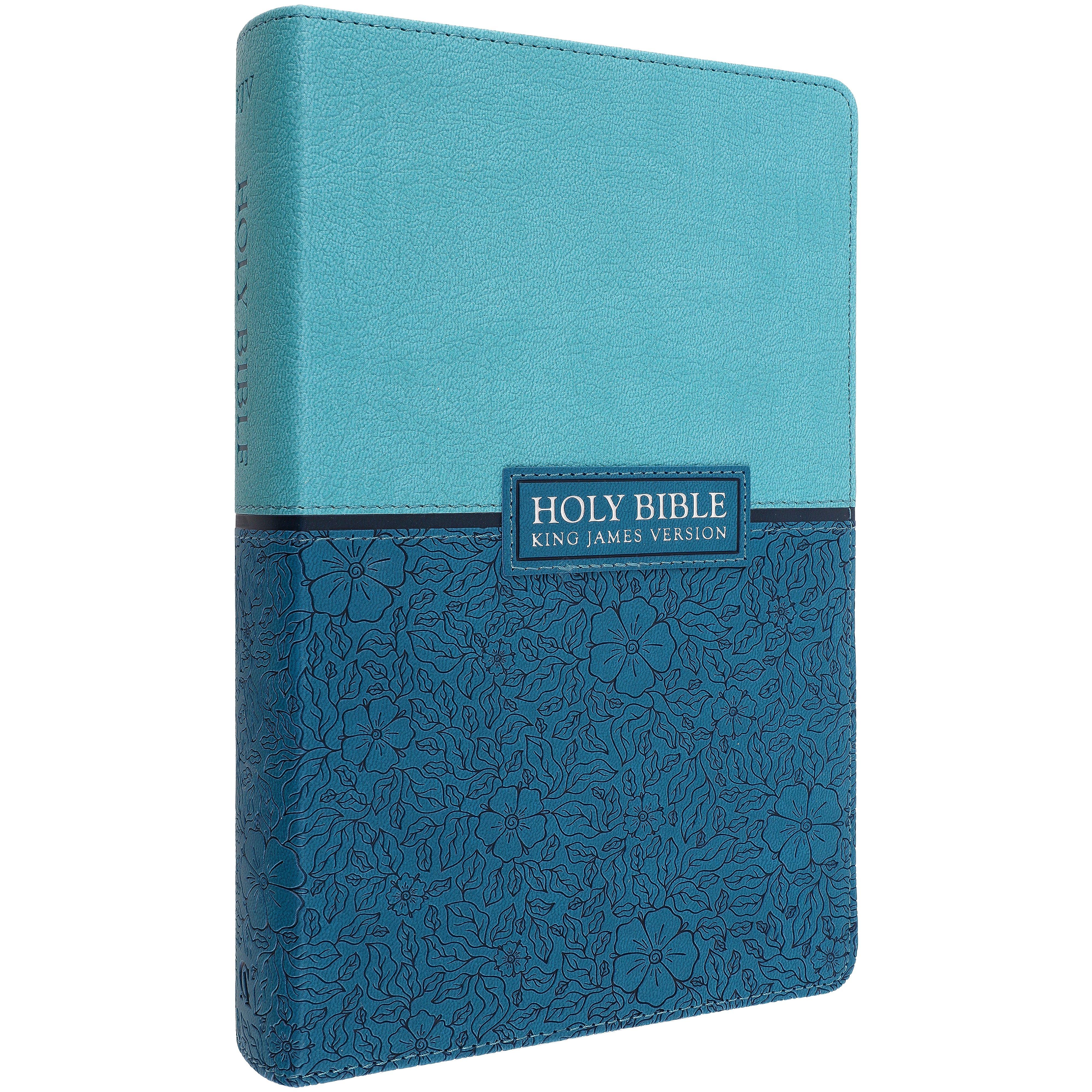 KJV Reference Bible, Giant Print, Teal Blue, Floral Pattern, Imitation Leather, Red Letter
