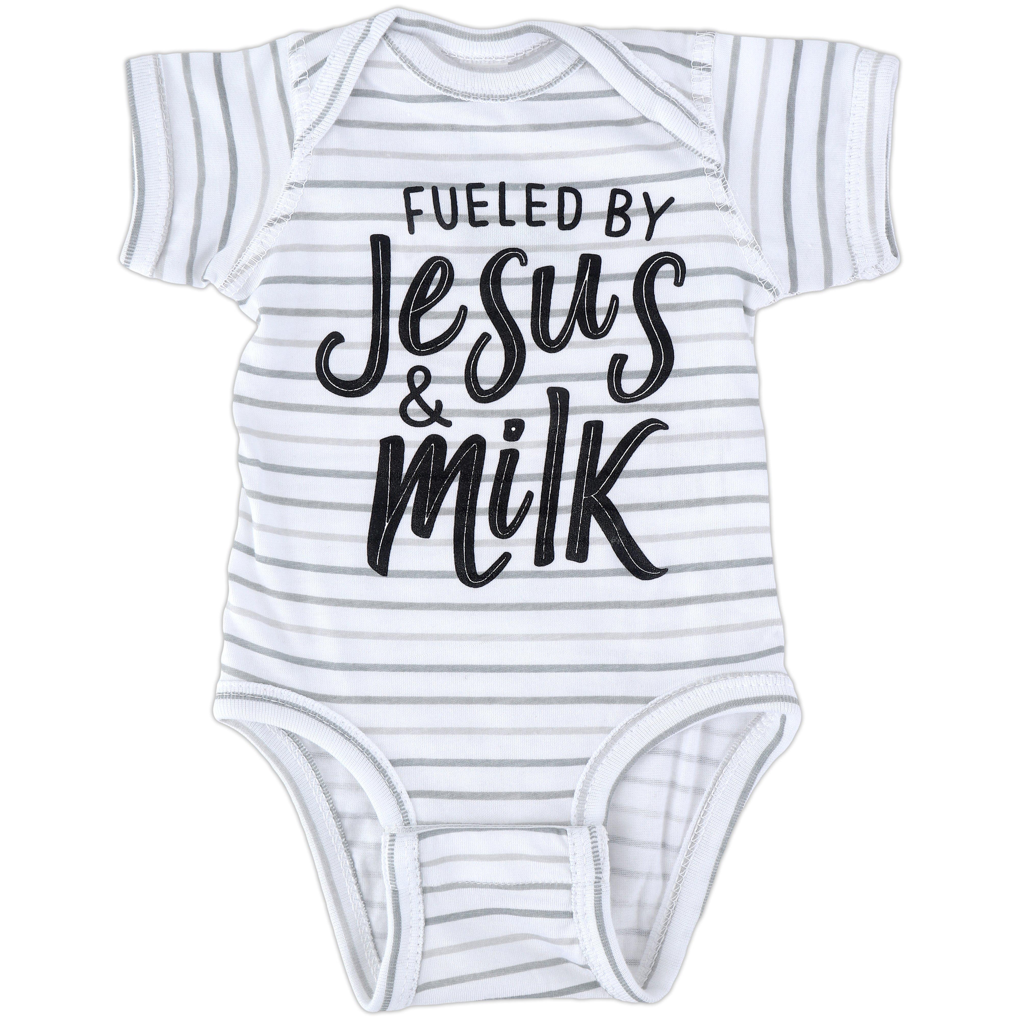 New Ewe, Fueled by Jesus & Milk Baby Onesie, NB-12M