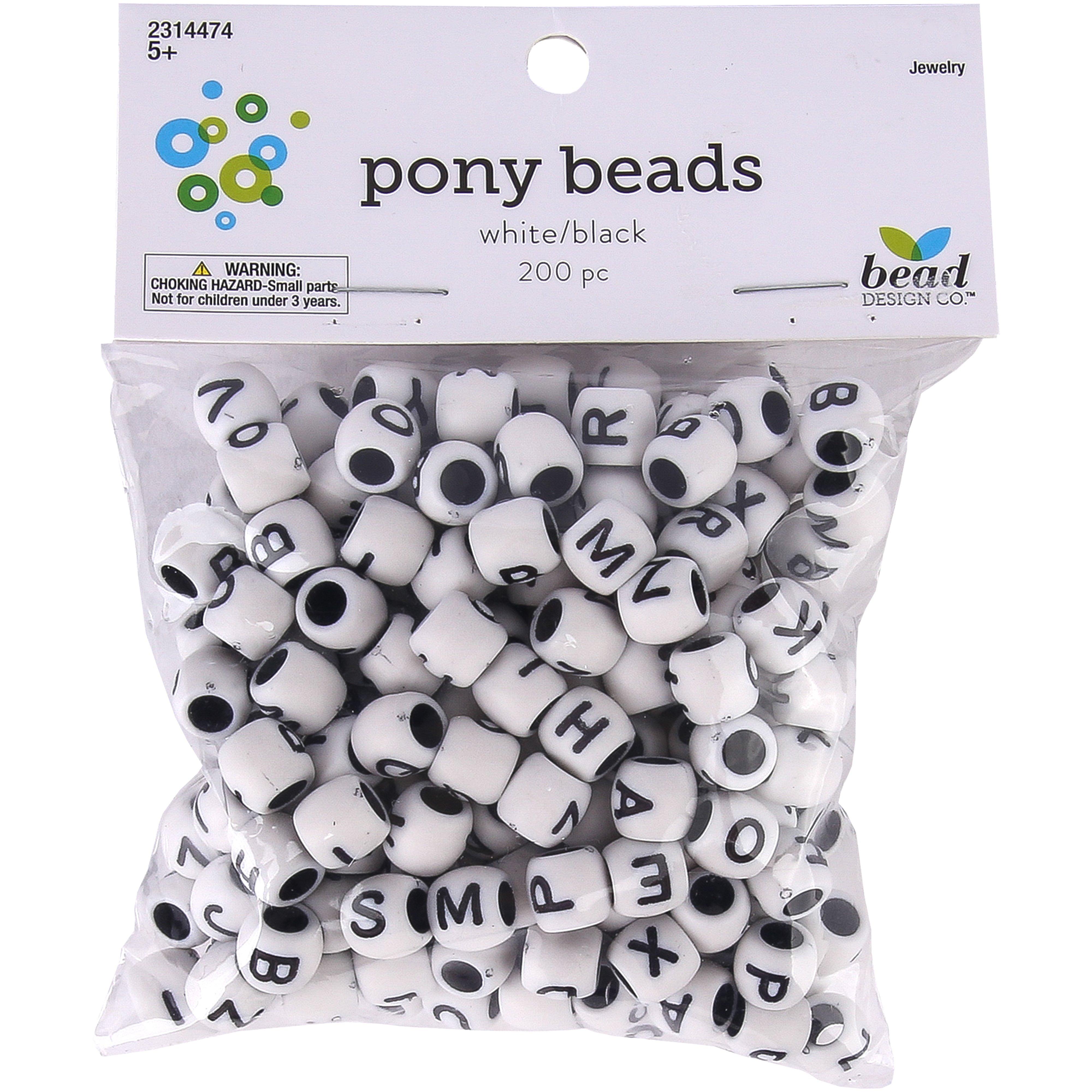 Black & White Alphabet Pony Beads, 8 x 9 mm, 200 pieces