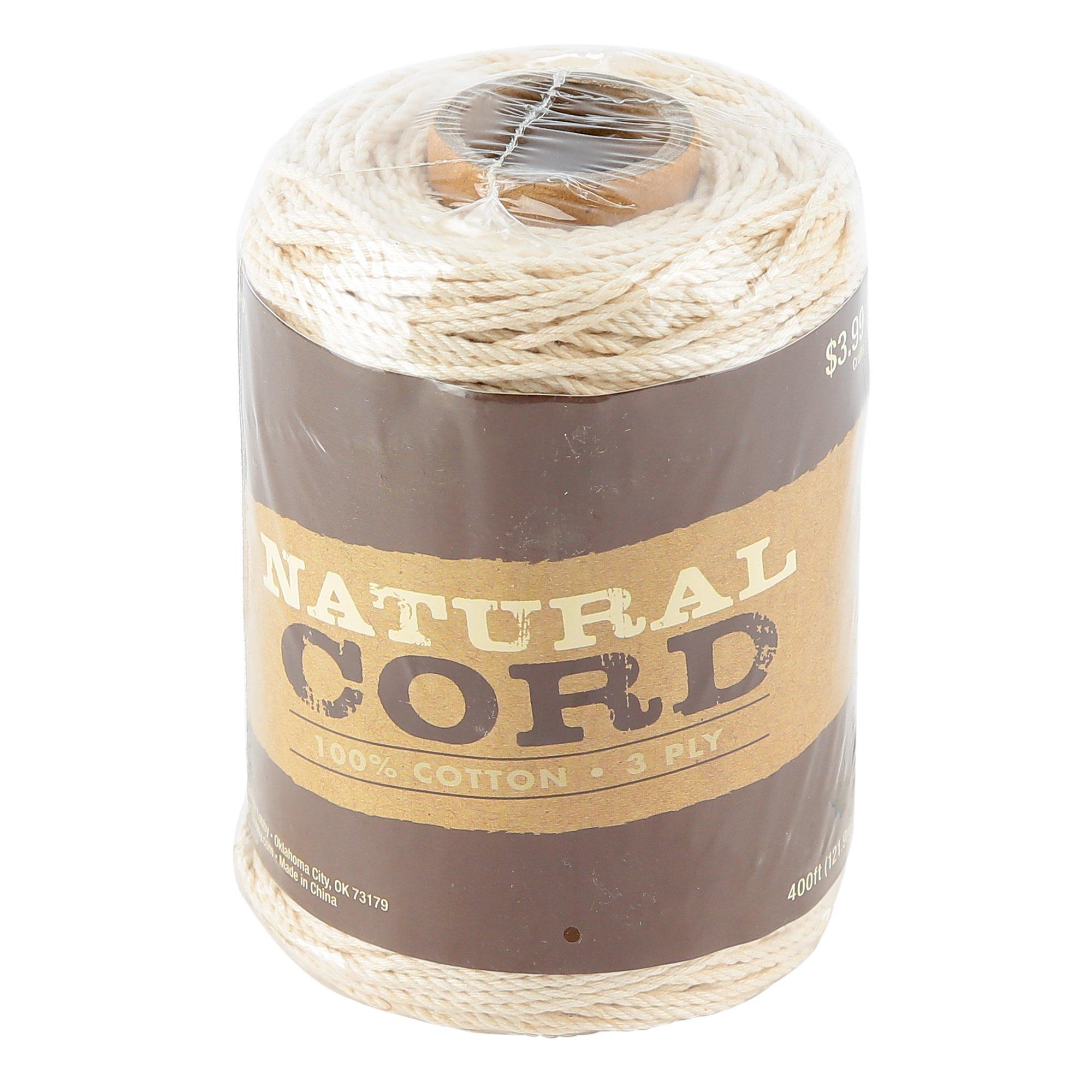 Natural Cord Cotton Rope, 3-Ply, 1.5mm, 400 Feet