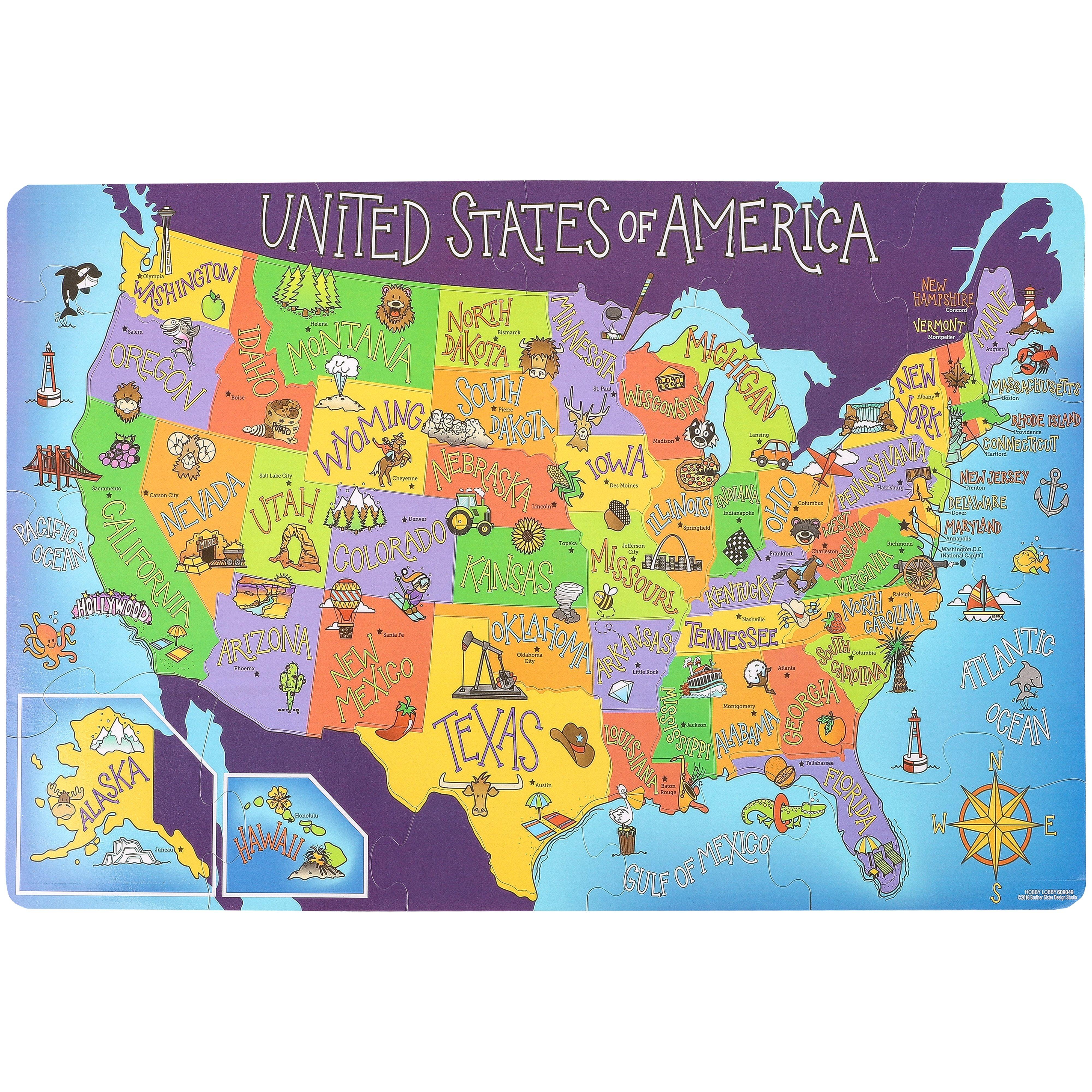 USA Magnetic Puzzle Map, 16.75 x 11 Inches, 37 Pieces