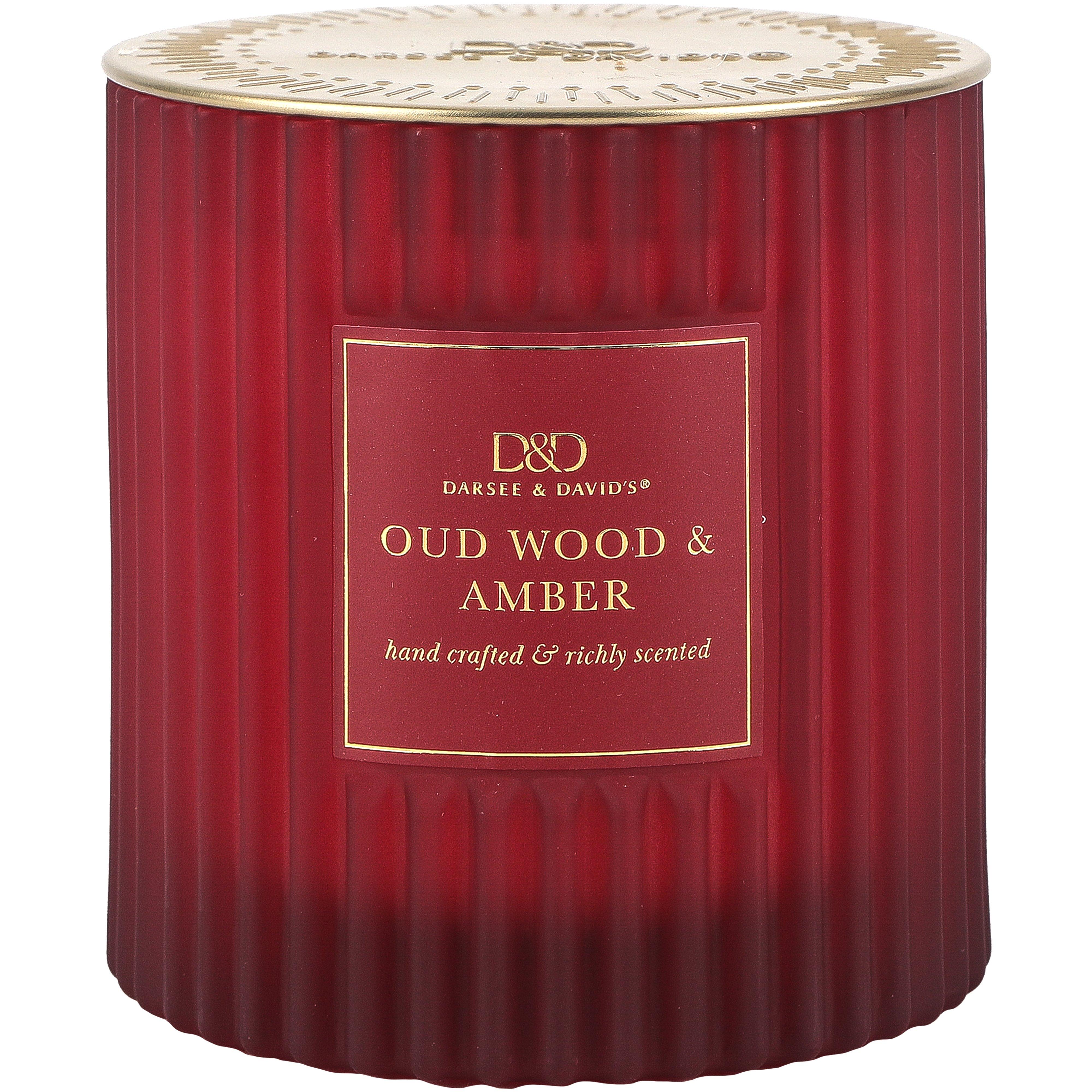 Oud Wood & Amber Ribbed Candle, by Darsee & David's, 10 ounces