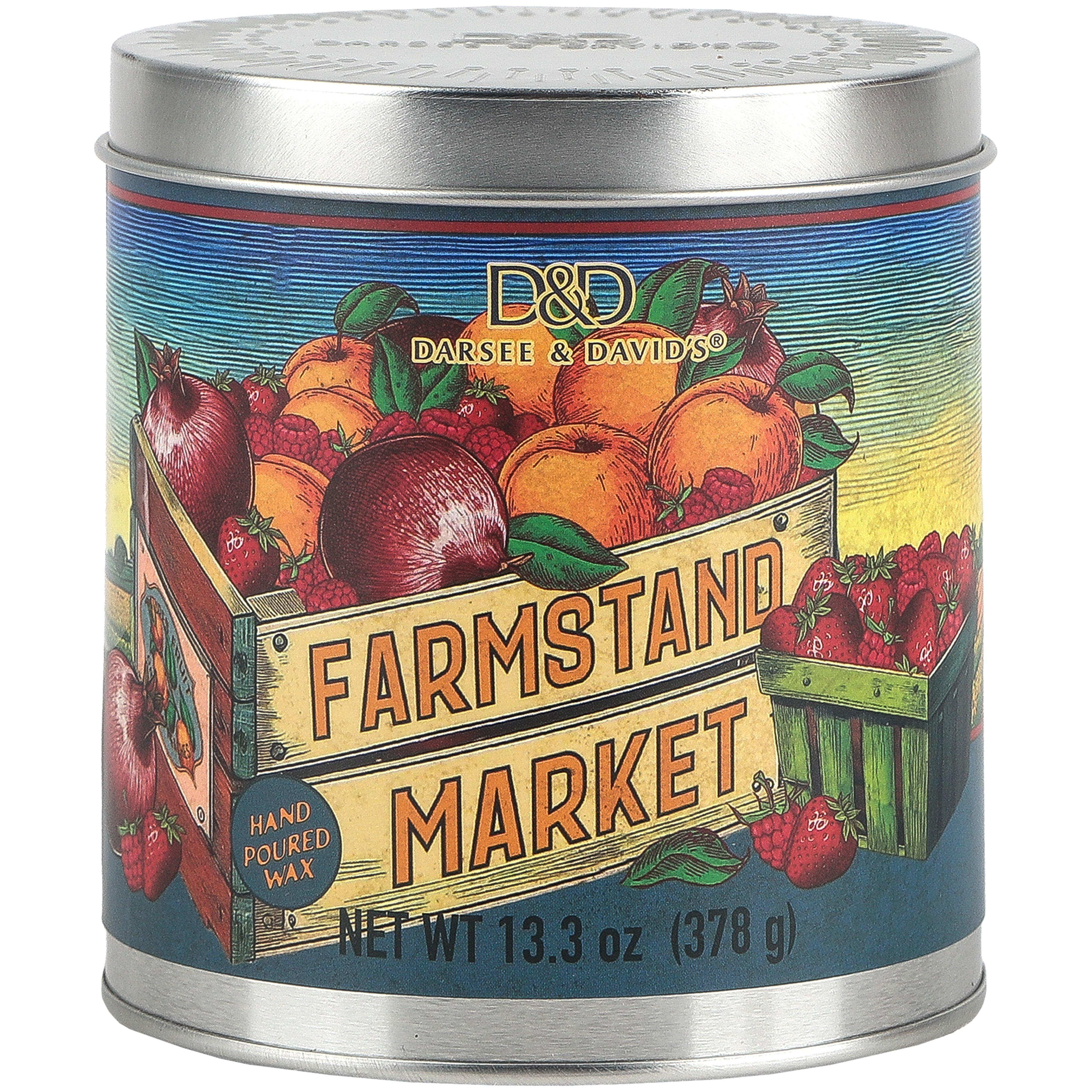 Farmstand Market Scented Candle Tin, by Darsee & David's, 13 Ounces