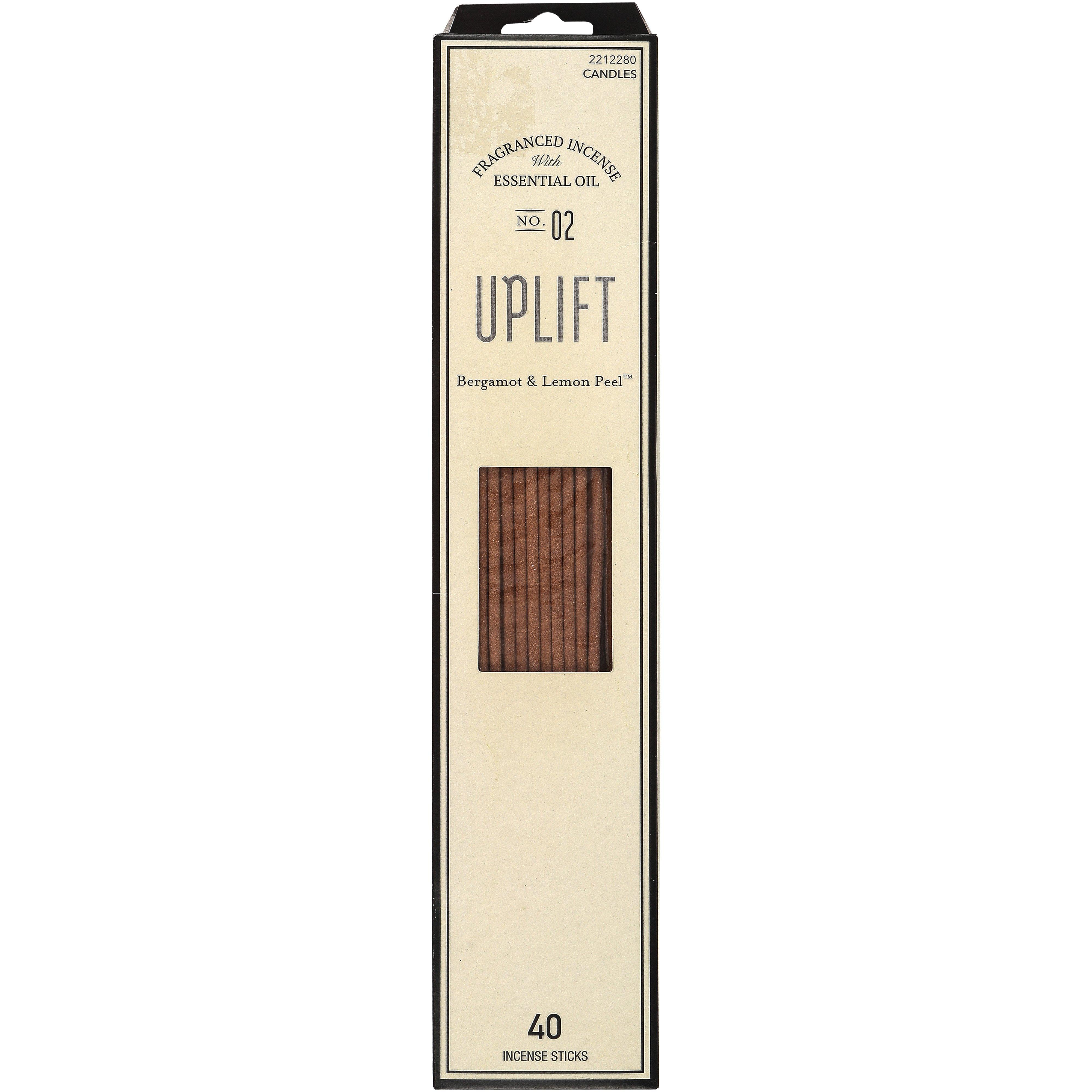 Uplift Bergamot & Lemon Peel Incense Sticks, 40 count, 10 inches