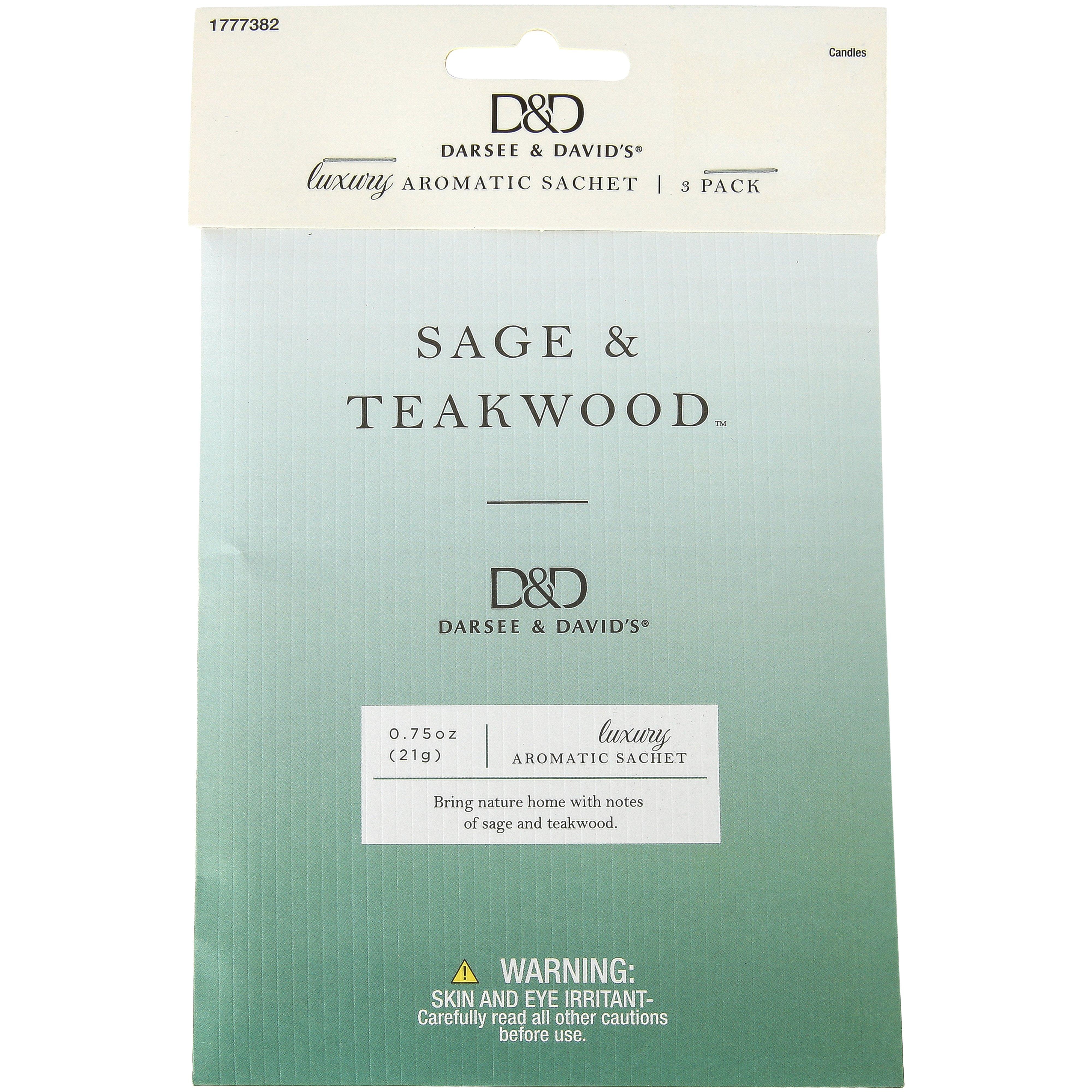 D&D, Sage & Teakwood Luxury Aromatic Sachets, 0.75 Ounce, 3 Count