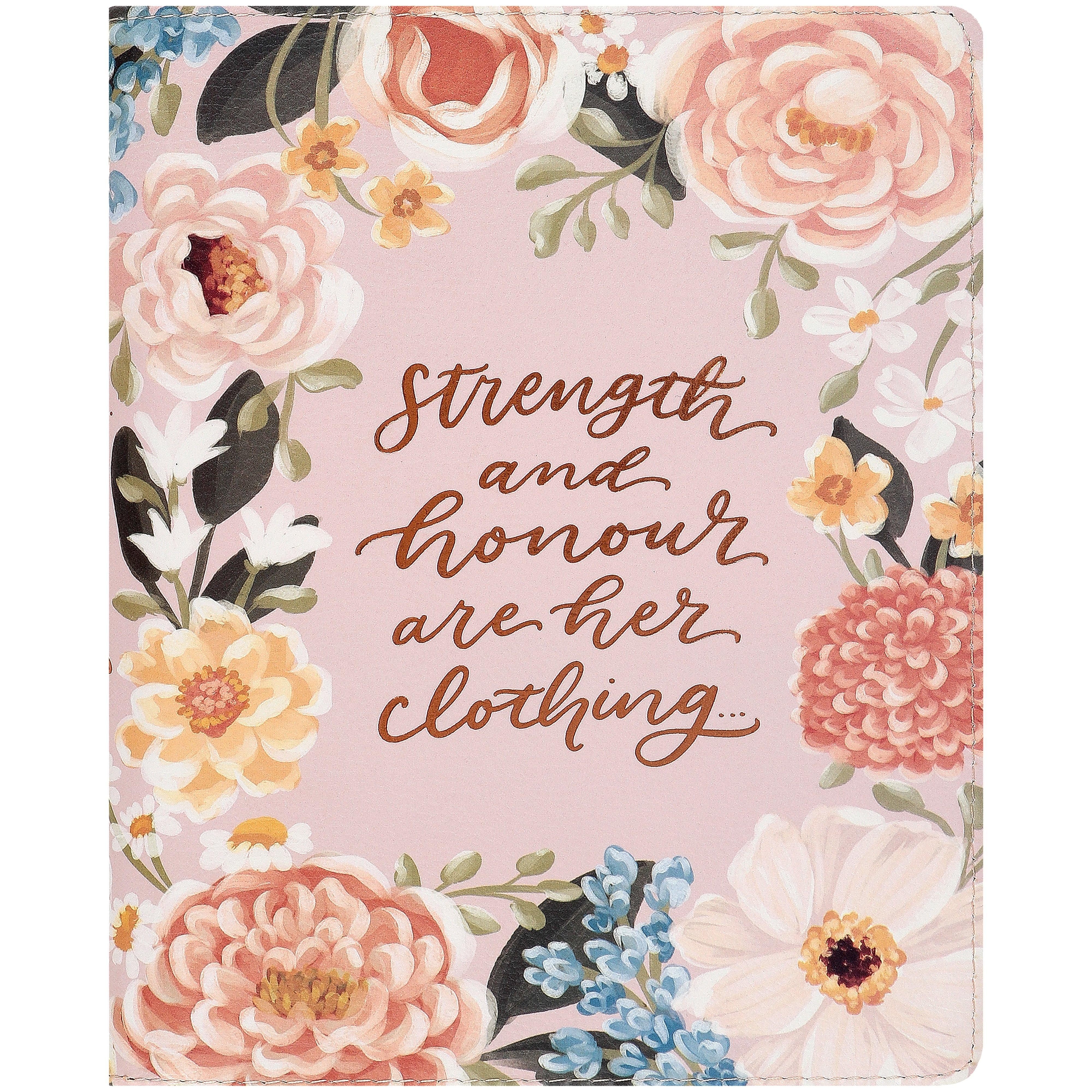 Proverbs 31:25 Strength & Honor Peach Floral Imitation Leather Zip Journal
