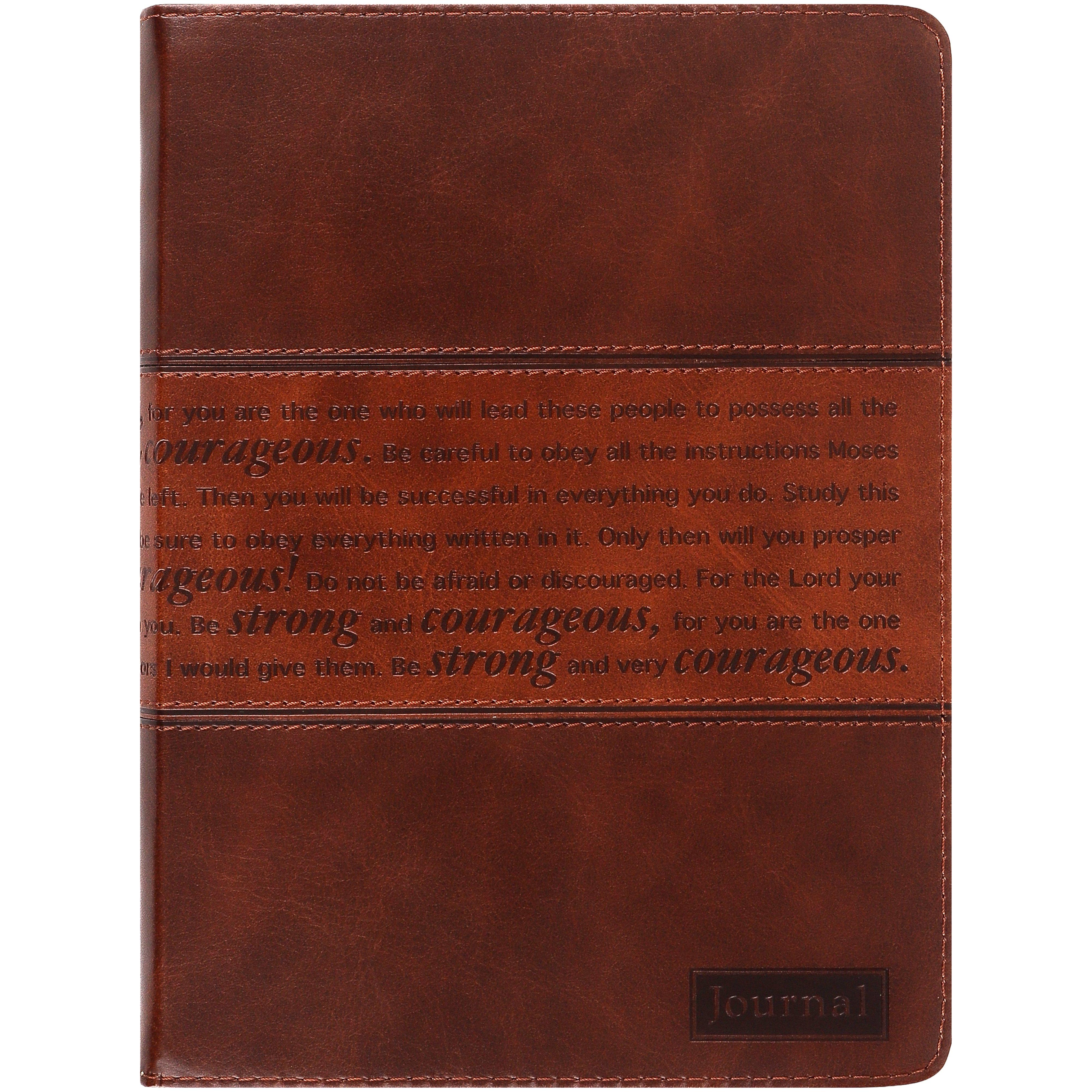 Joshua 1:5-7 Strong & Courageous Two-Tone Brown Imitation Leather Zip Journal