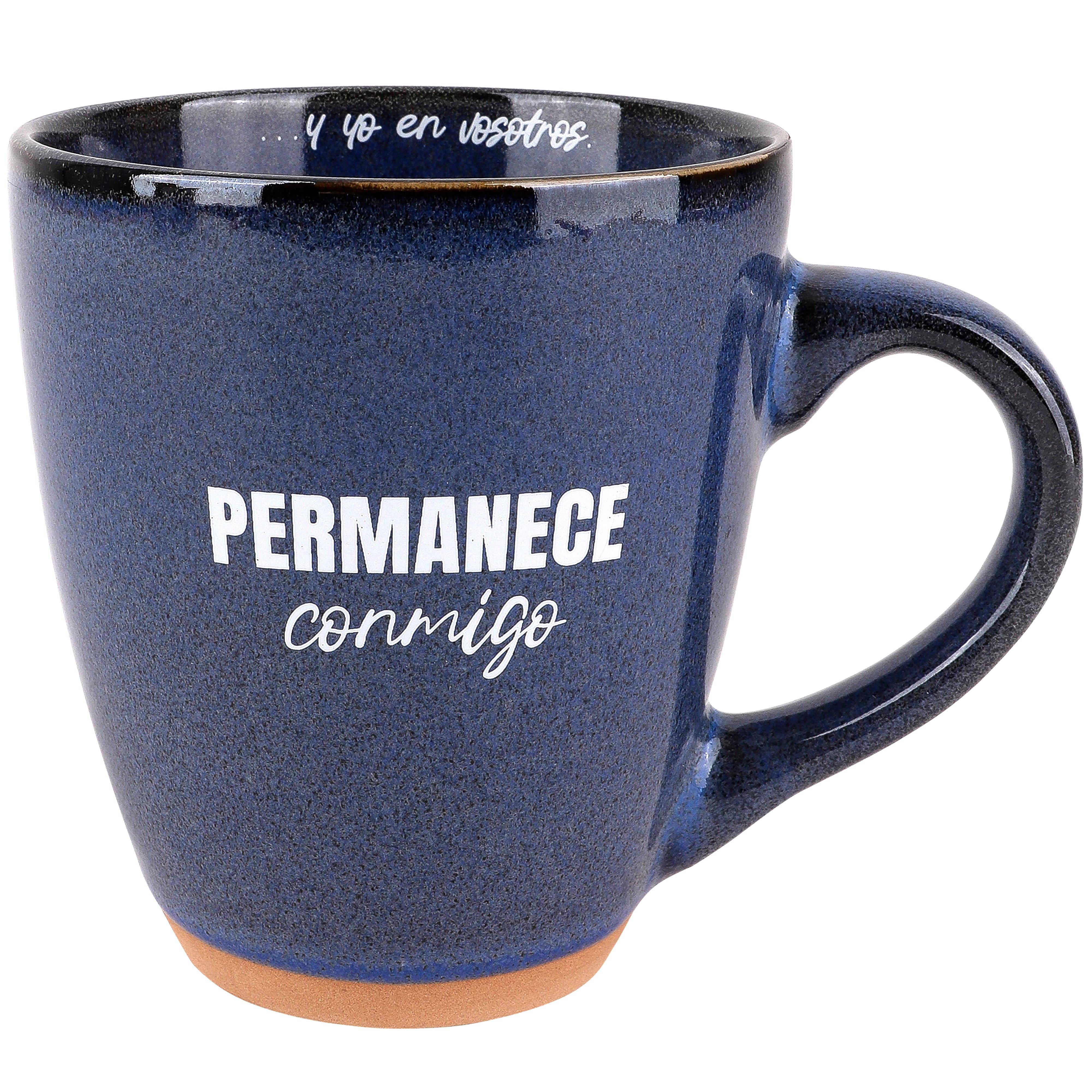 Permanece Conmigo Taza de cerámica azul Juan 15:4, 13 onzas