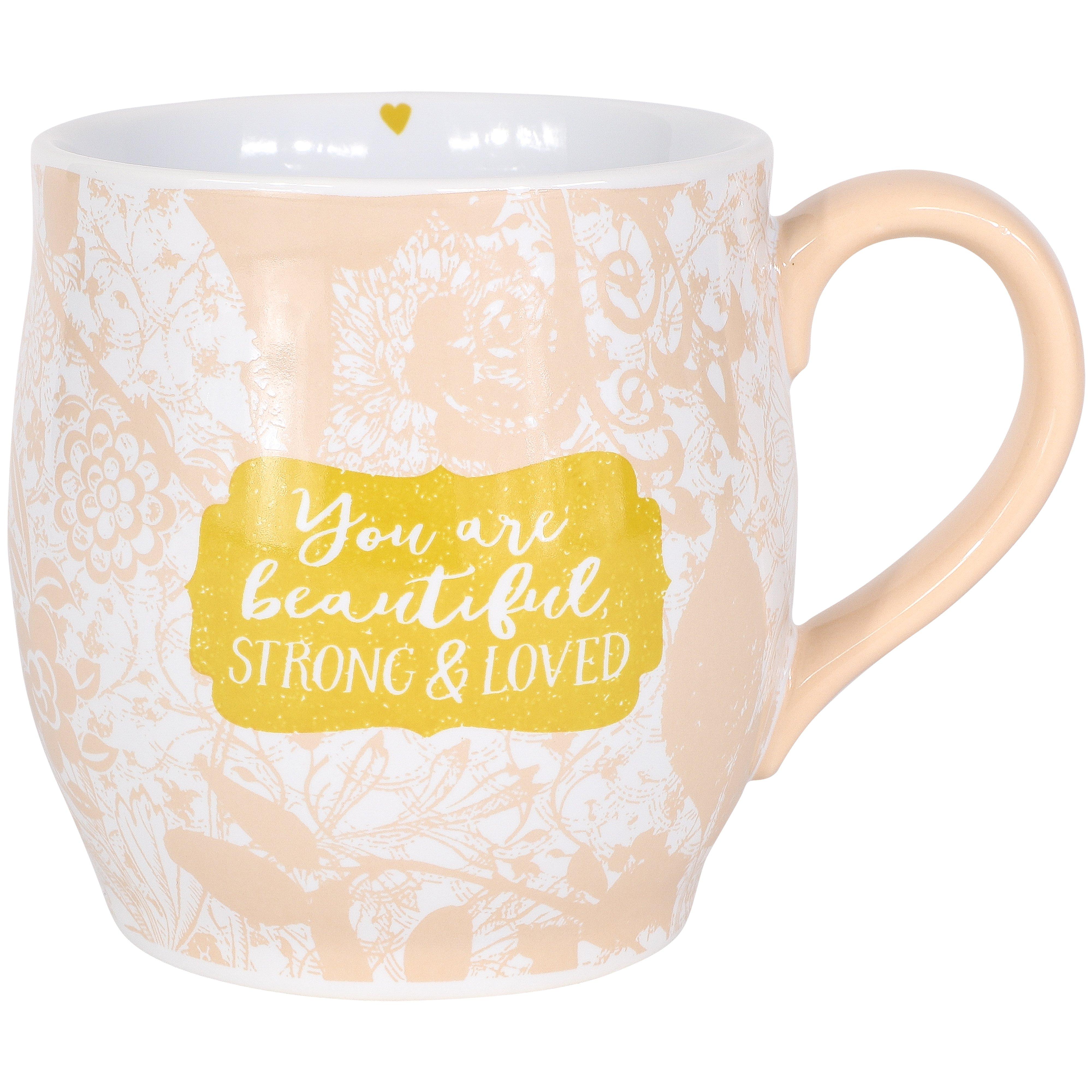 You Are Beautiful Strong & Loved Floral Ceramic Mug, 14 Oz
