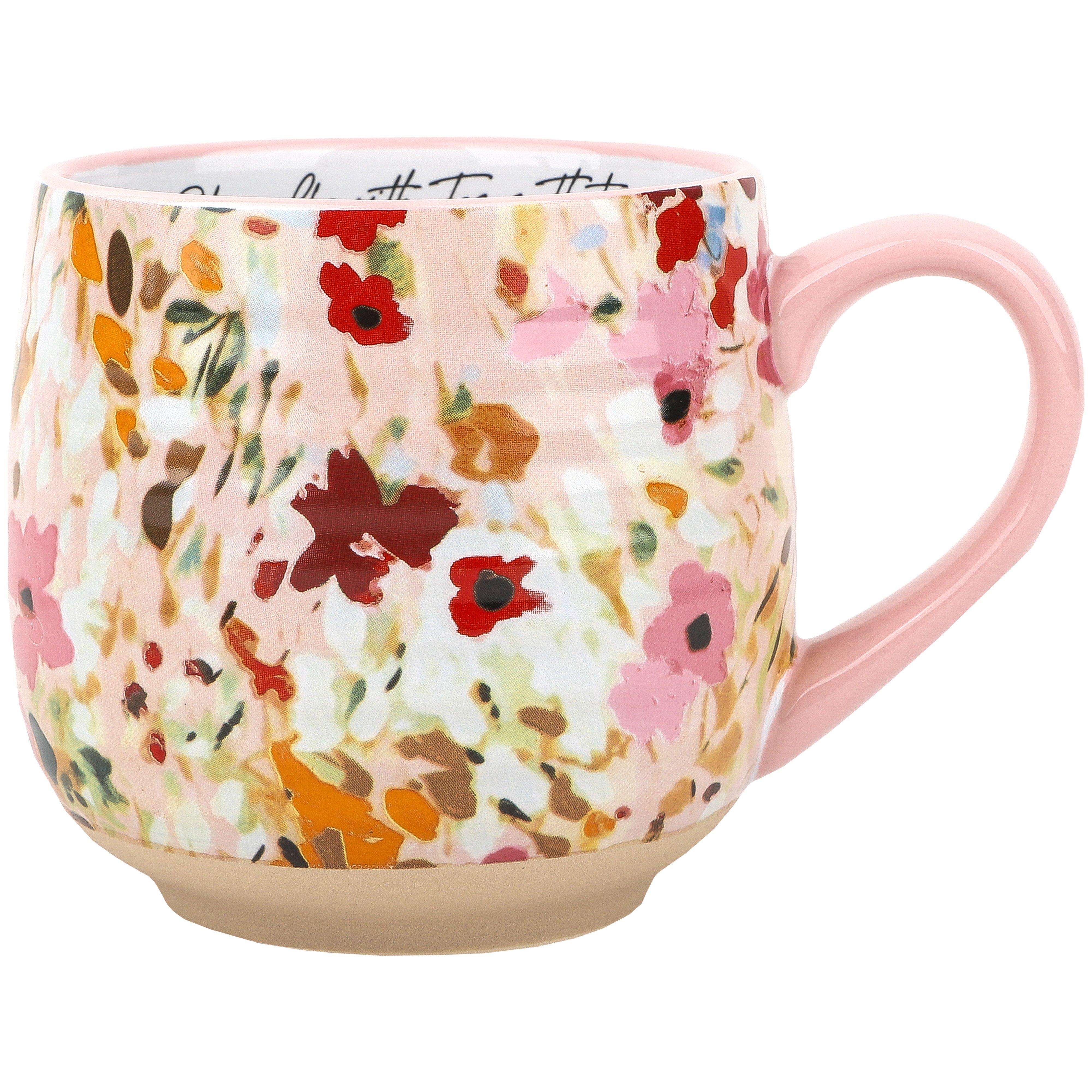 She Walks With Jesus Floral Ceramic Mug, 18 Oz
