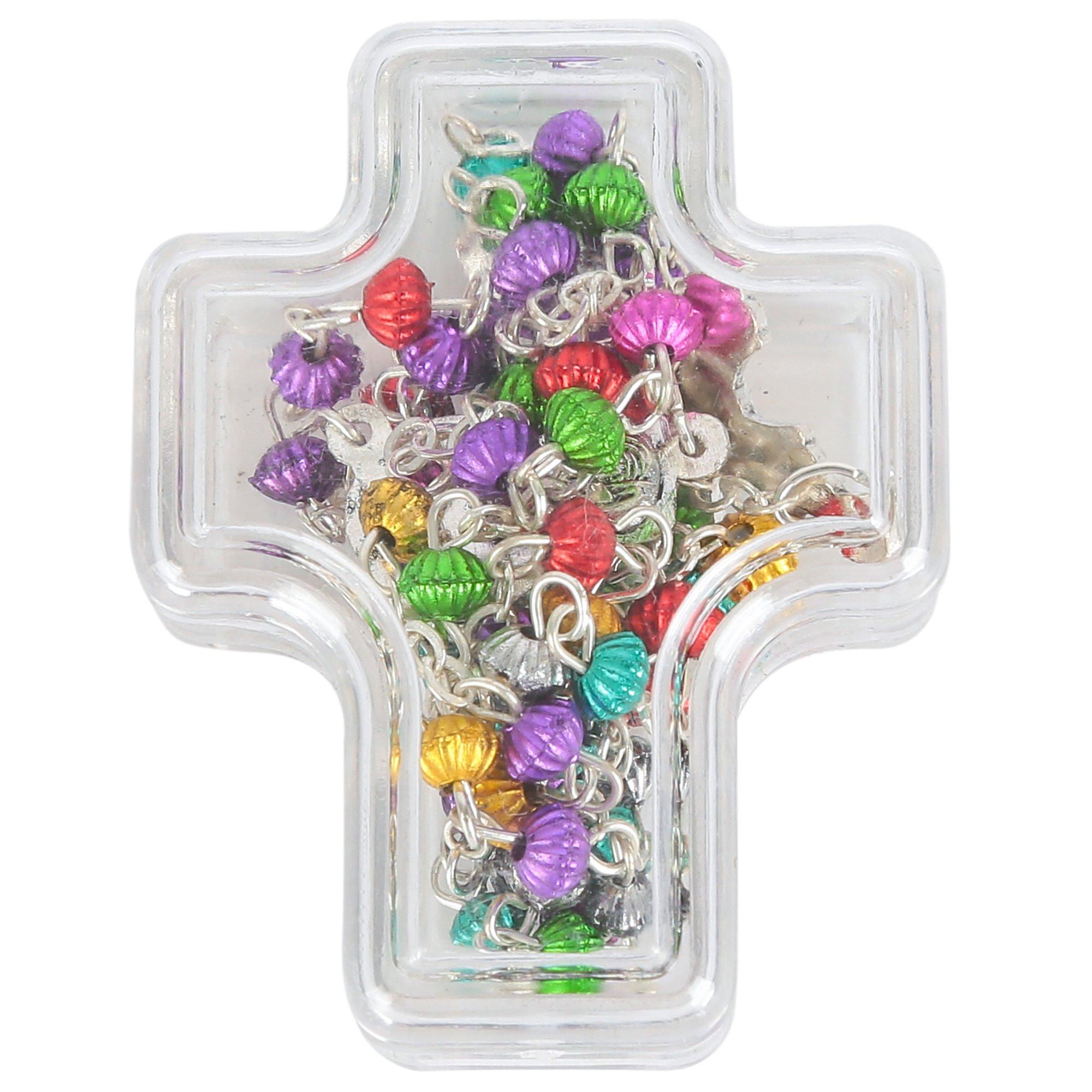 Rosary with Silver Crucifix & Multi-Colored Beads