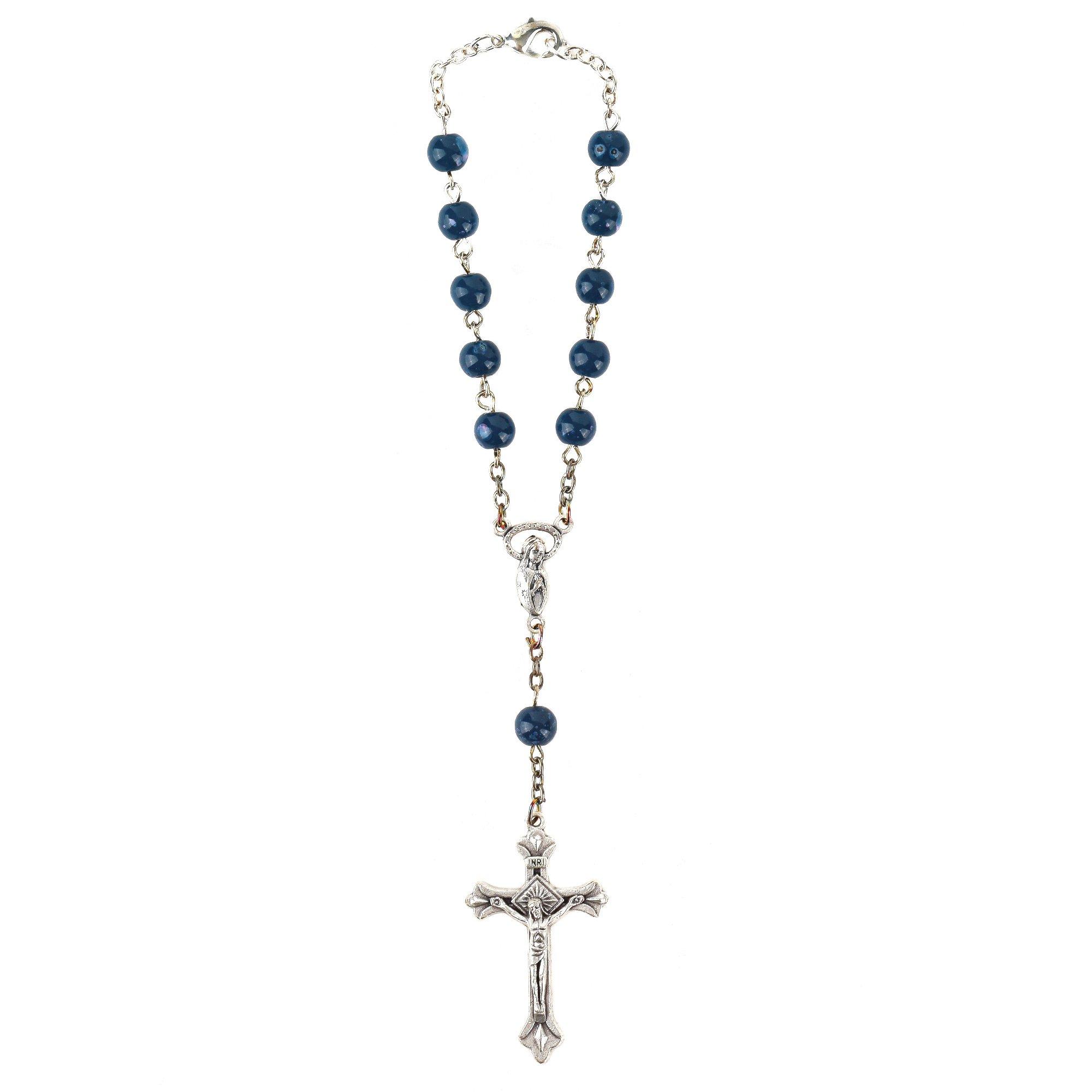 H.J. Sherman, Auto Rosary, Silver & Blue, 6 1/2 inches