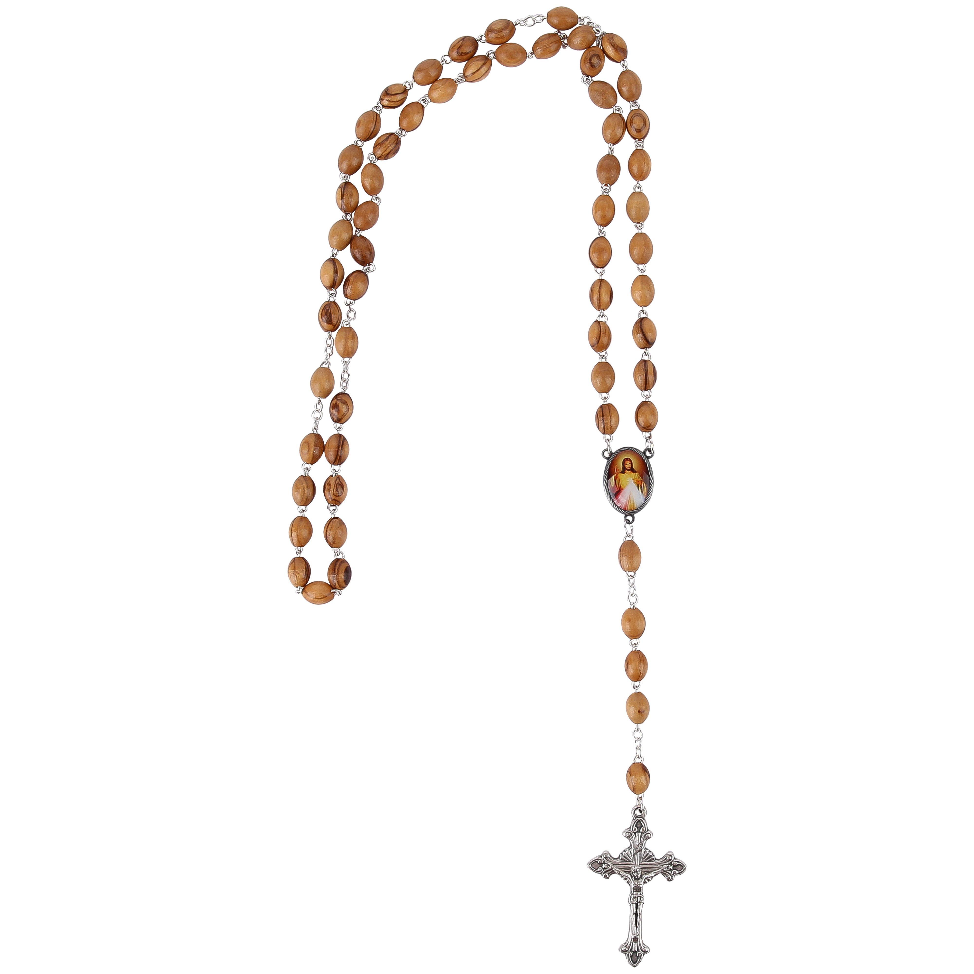 Olive Wood Rosary With Divine Mercy Of Jesus, 22.5 Inches