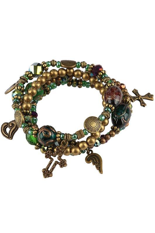 Bella Grace, Beaded Stretch Bracelets with Charms, Set of 4
